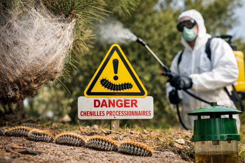 La présence de chenilles processionnaires représente un risque important pour la santé. Elles possèdent des poils urticants qui peuvent provoquer des démangeaisons, des irritations de la peau, des réactions allergiques ou des troubles respiratoires. Les chiens et animaux domestiques sont particulièrement exposés et peuvent subir de graves blessures en cas de contact.